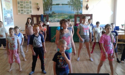 » Утренняя зарядка в лагере.